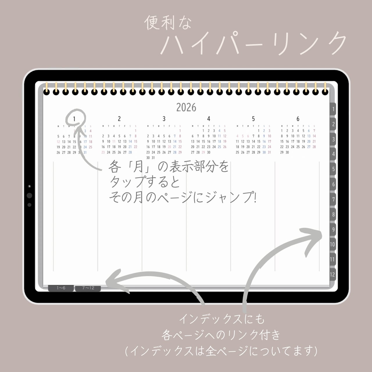 ハイパーリンク機能:デジタルプランナー内のページのリンク機能のこと。
