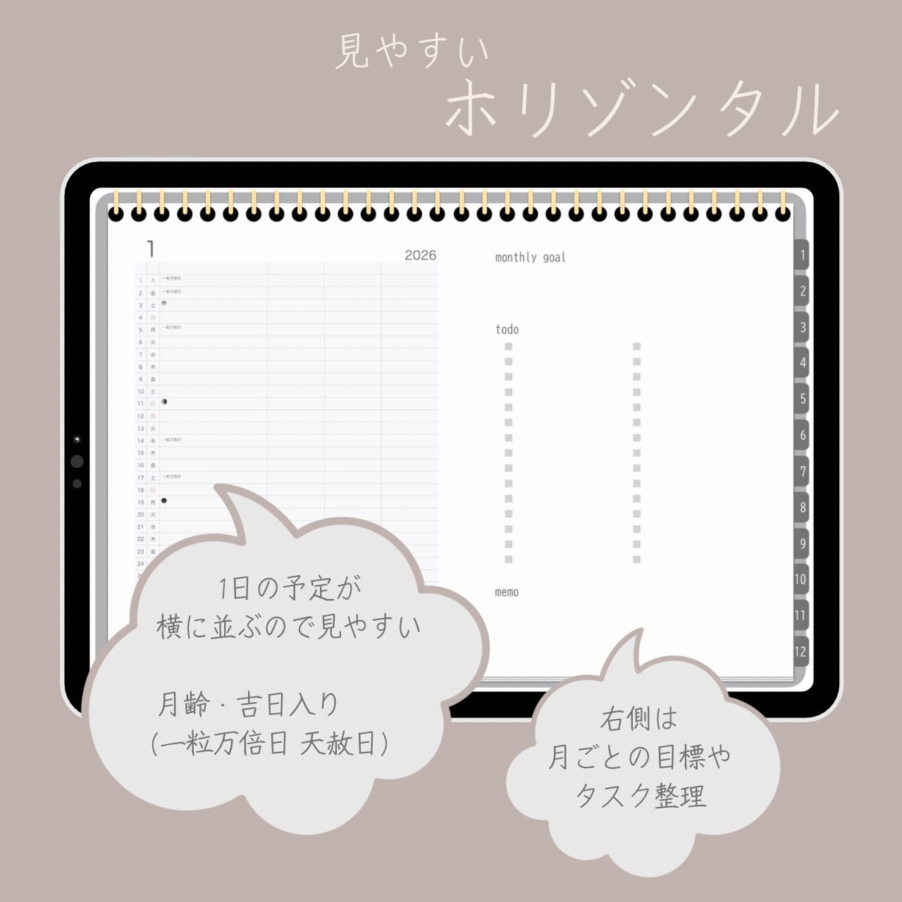【手帳好きのデジプラ】ホリゾンタルマンスリー2026.1始まり